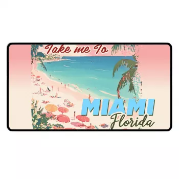 Take Me To Miami Florida Desk Mat – Miami Beach Desk Pad Mouse Pad – Retro Summer Laptop Desk Mat