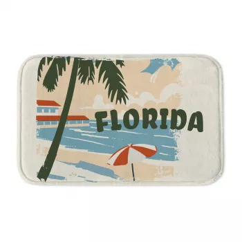 Retro Florida Bath Mat – Aesthetic Beach Bathroom Rug – Tropical Holiday Bath Room Floor Mat