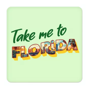 Take Me To Florida Square Coaster 4-Piece Set – Coastal Vacation Coasters for Drinks – Summer Coffee Tea Mug Coasters
