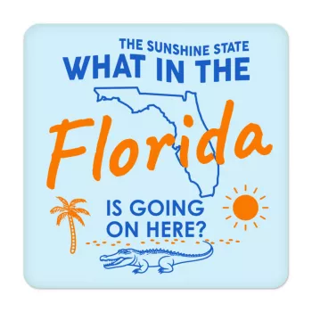 What In The Florida Is Going On Here Square Coaster 4-Piece Set – Florida Trip Coasters for Drinks – Sunshine Coffee Tea Mug Coasters