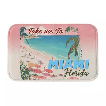 Take Me To Miami Florida Bath Mat – Retro Summer Bathroom Rug – Miami Beach Bath Room Floor Mat