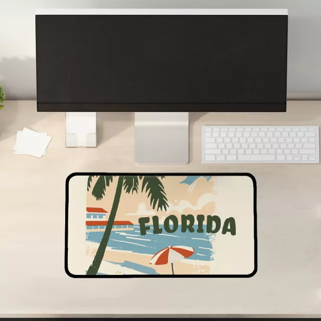 Retro Florida Desk Mat – Aesthetic Beach Desk Pad Mouse Pad – Tropical Holiday Laptop Desk Mat