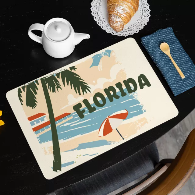 Retro Florida Placemat – Aesthetic Beach Placemats for Dining Table – Tropical Holiday Kitchen Mat