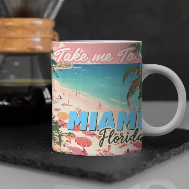 Take Me To Miami Florida 11oz Mug – Miami Beach Ceramic Mug – Retro Summer Coffee and Tea Cup