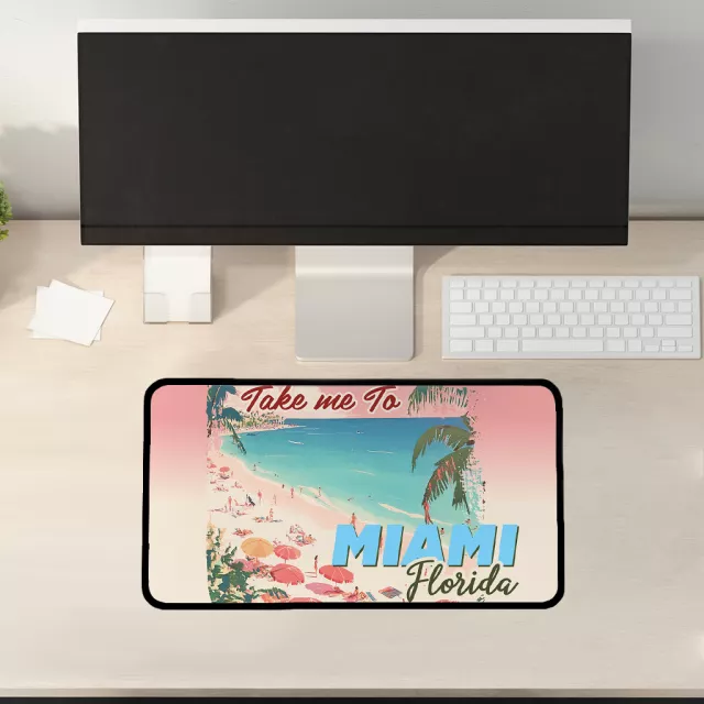 Take Me To Miami Florida Desk Mat – Miami Beach Desk Pad Mouse Pad – Retro Summer Laptop Desk Mat