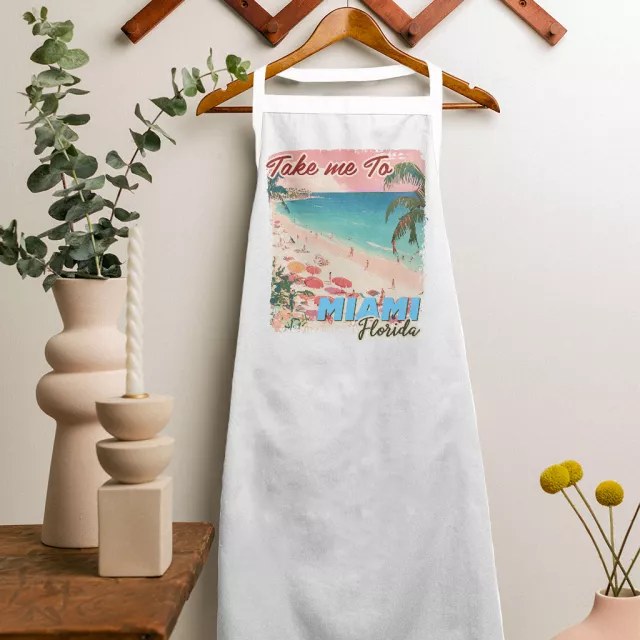 Take Me To Miami Florida Unisex Apron – Retro Summer Chef Apron for Kitchen – Miami Beach Machine Washable Apron